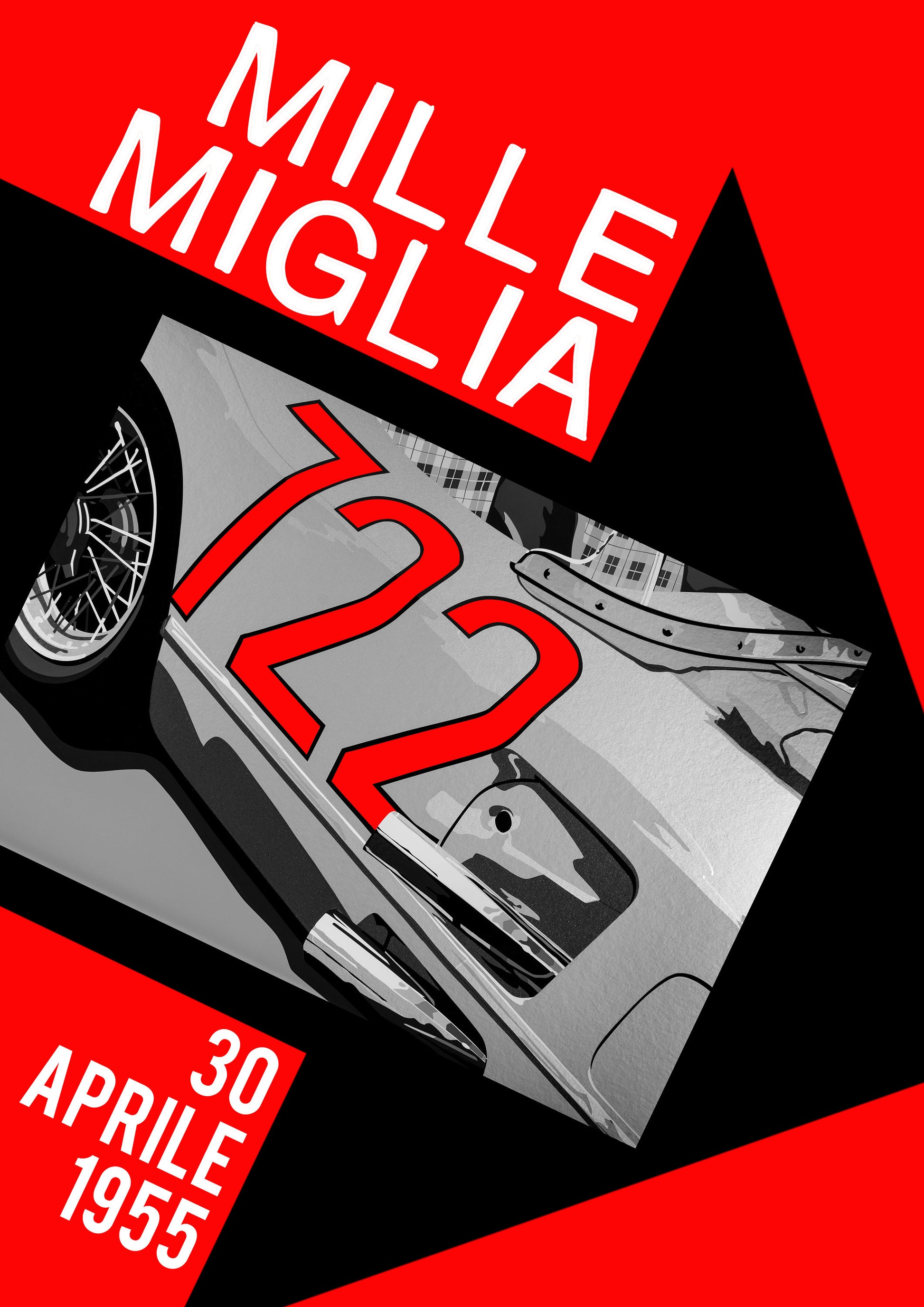 Stirling Moss 1955 Mercedes 722 Mille Miglia retro poster-style fine art print. Motorsport Art. Portrait.
