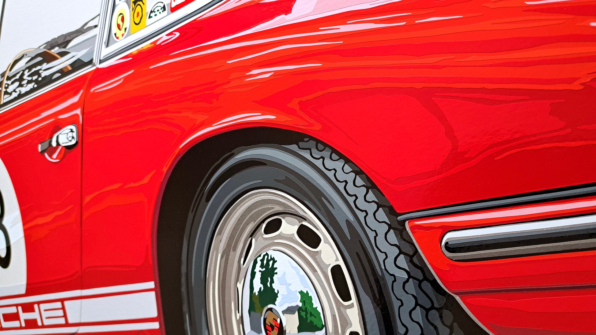 This piece was created in collaboration with Hanger 136 at Bicester Heritage, ans part of a live art demo during the Autumn Scramble event. It features a beautiful example of a 1968 Porsche 912, of which was part of their stock of classic cars for sale.