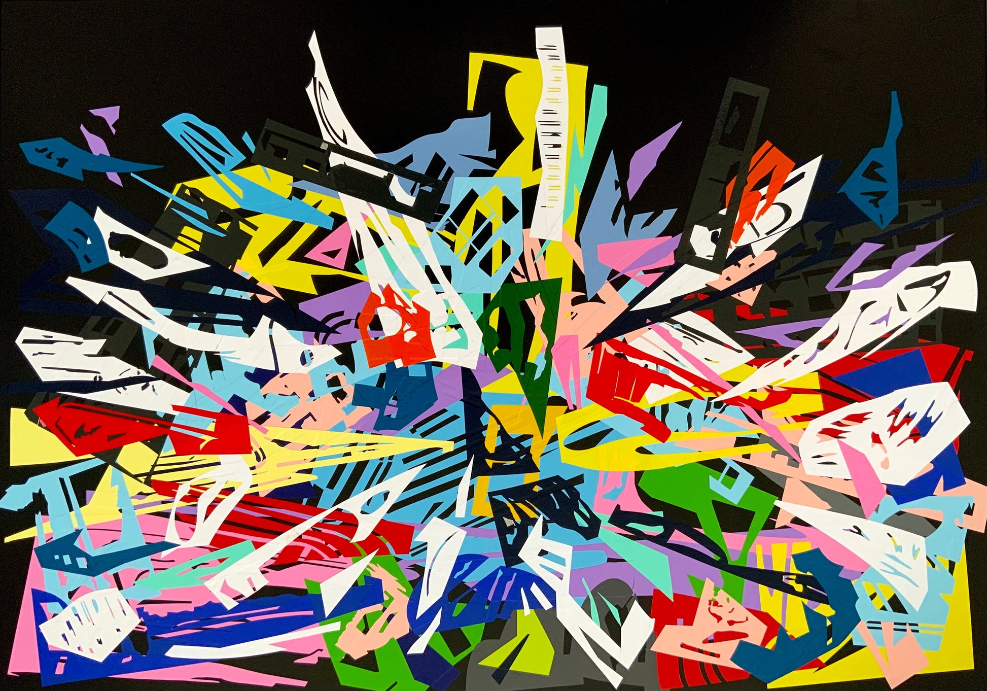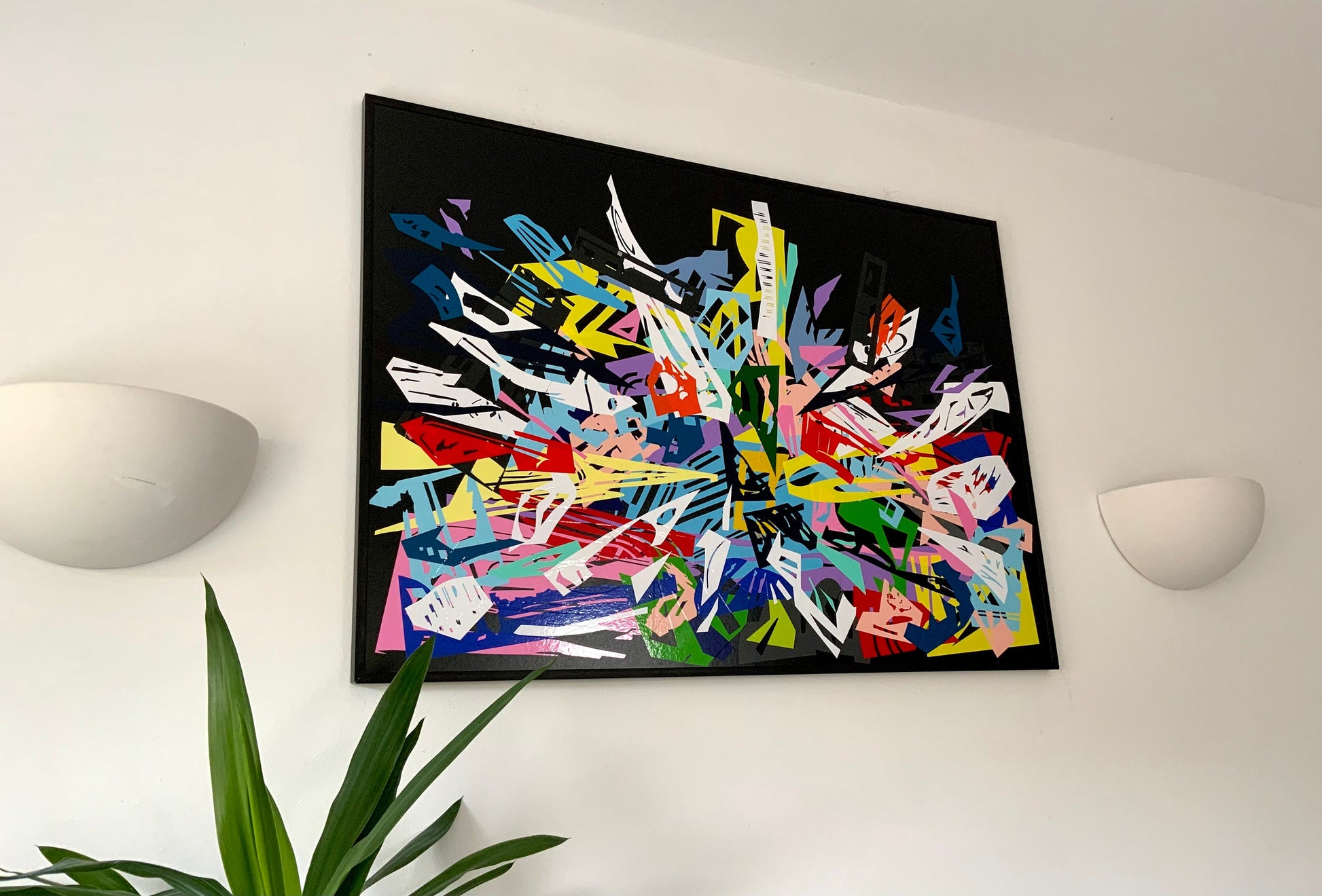 No.22 in the hand-cut vinyl off cuts abstract series. These artworks are created from the shapes and colours that remain after cutting out the shapes for my other artworks. The pieces are carefully selected and applied in a totally organic process. https://www.etsy.com/uk/shop/JoelClarkArtist
