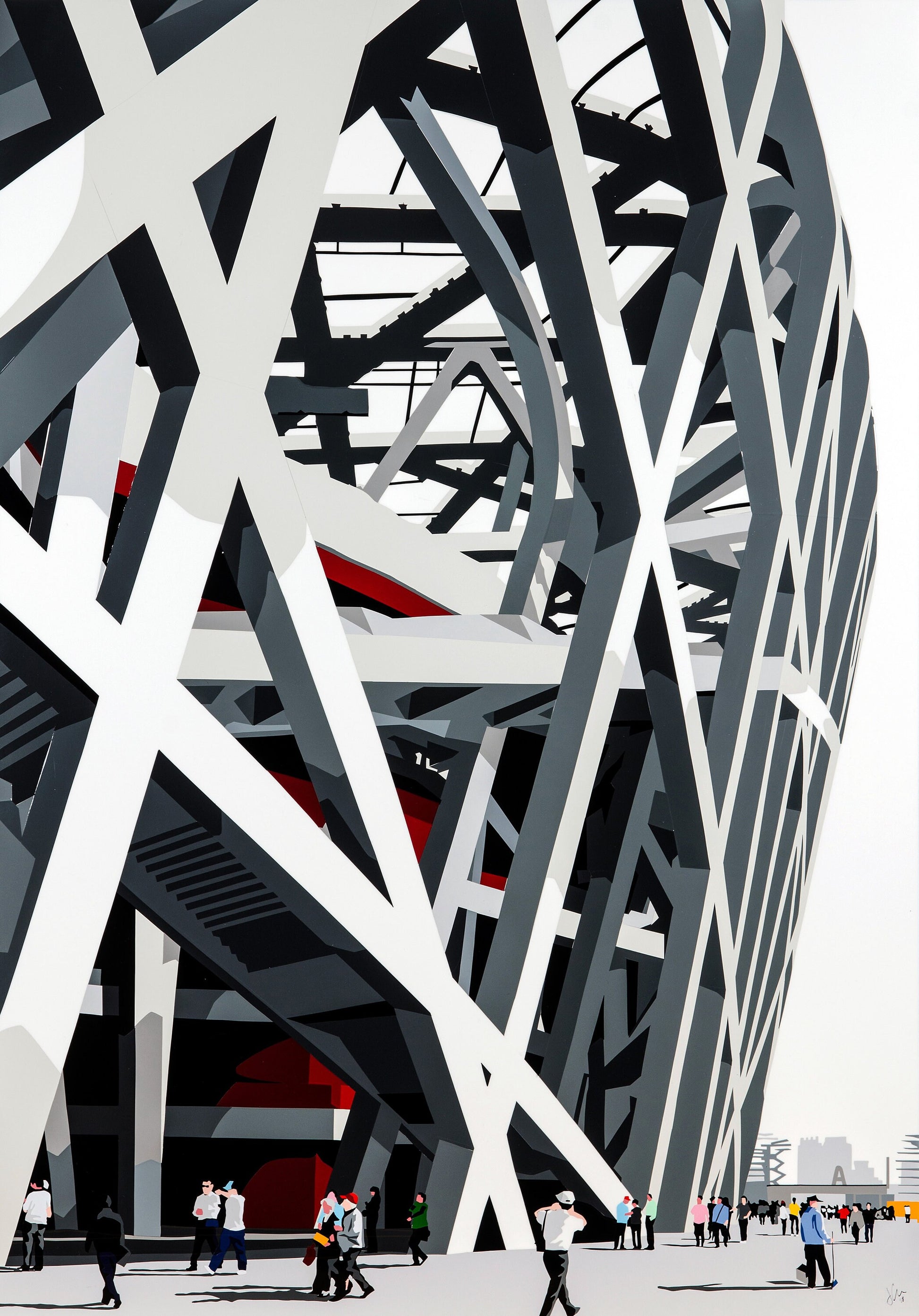 Bird's Nest Stadium People. Fine art Giclée Ltd Ed print.