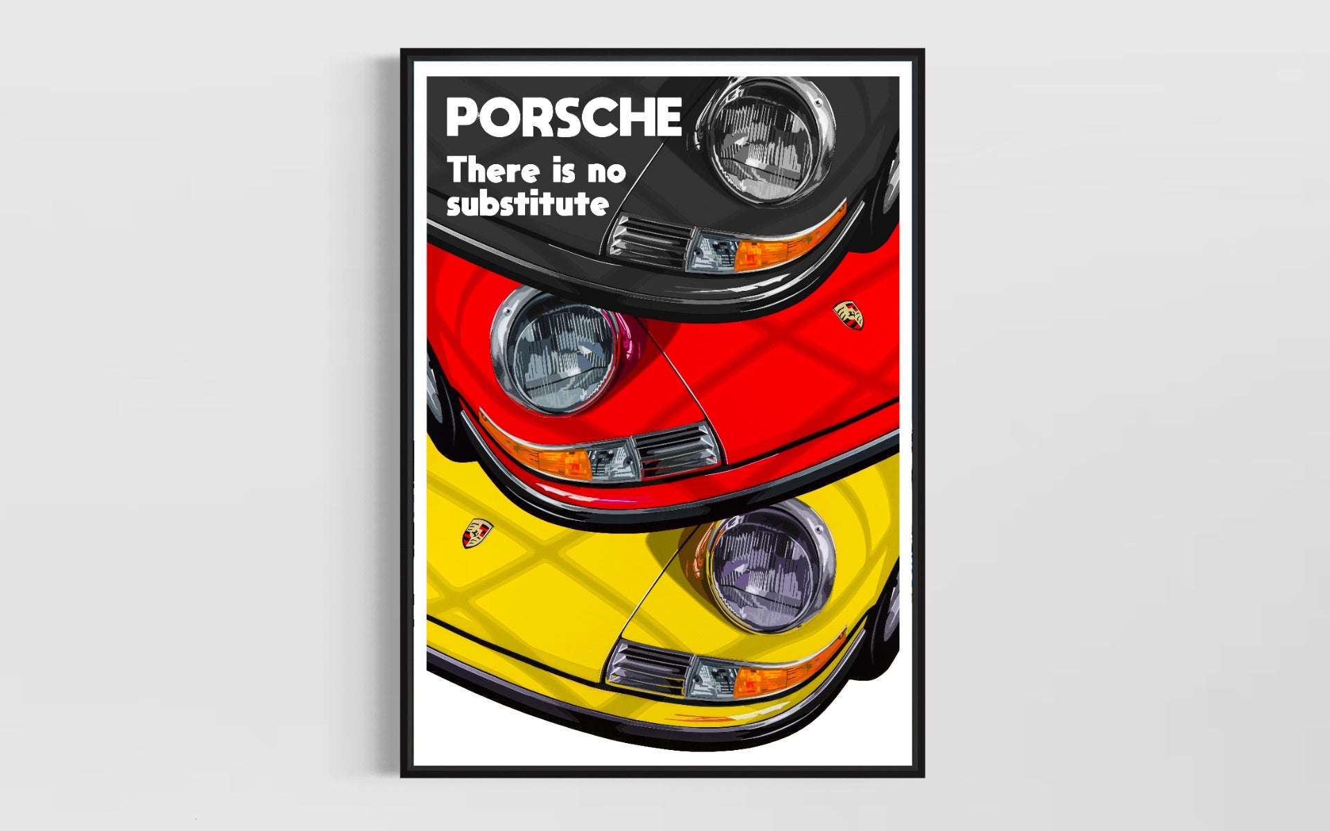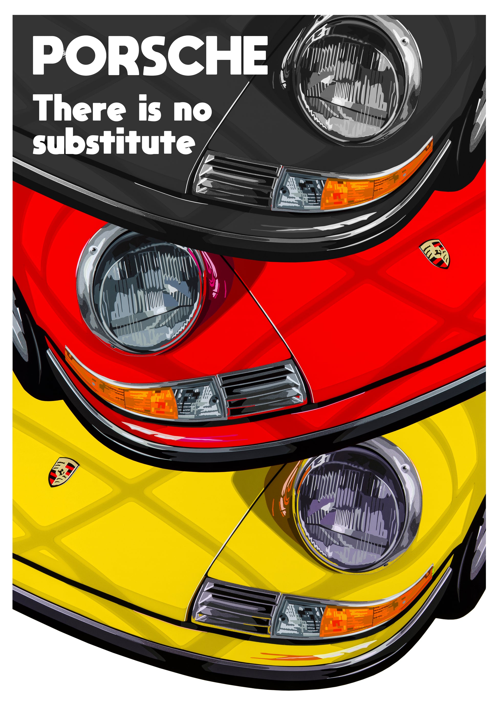 This design features a 1970 Porsche 911 T, and is designed in homage to the Porsche print advertising of the 1970's.