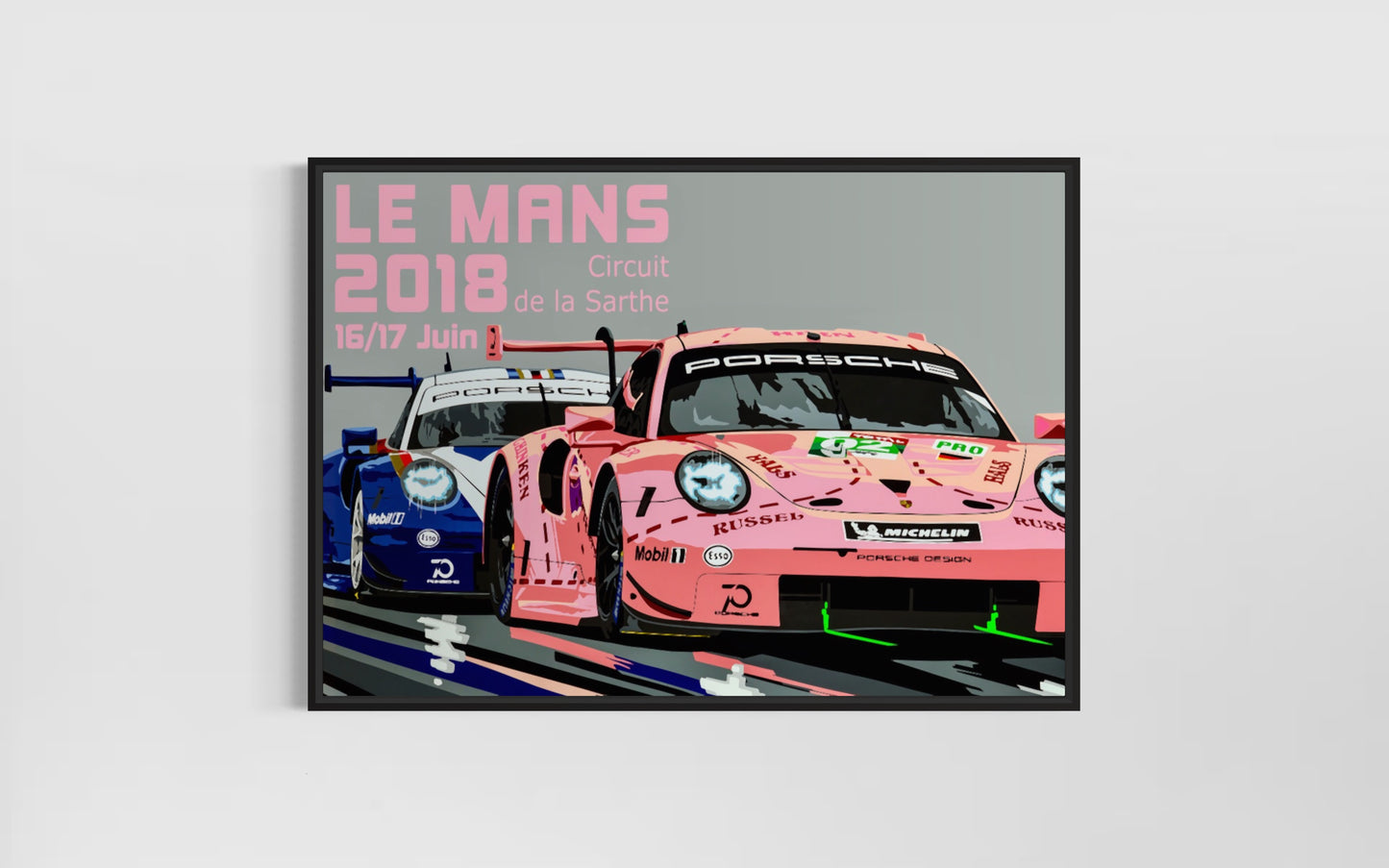 Porsche at Le Mans 2018 Race poster. Fine art Giclee print.