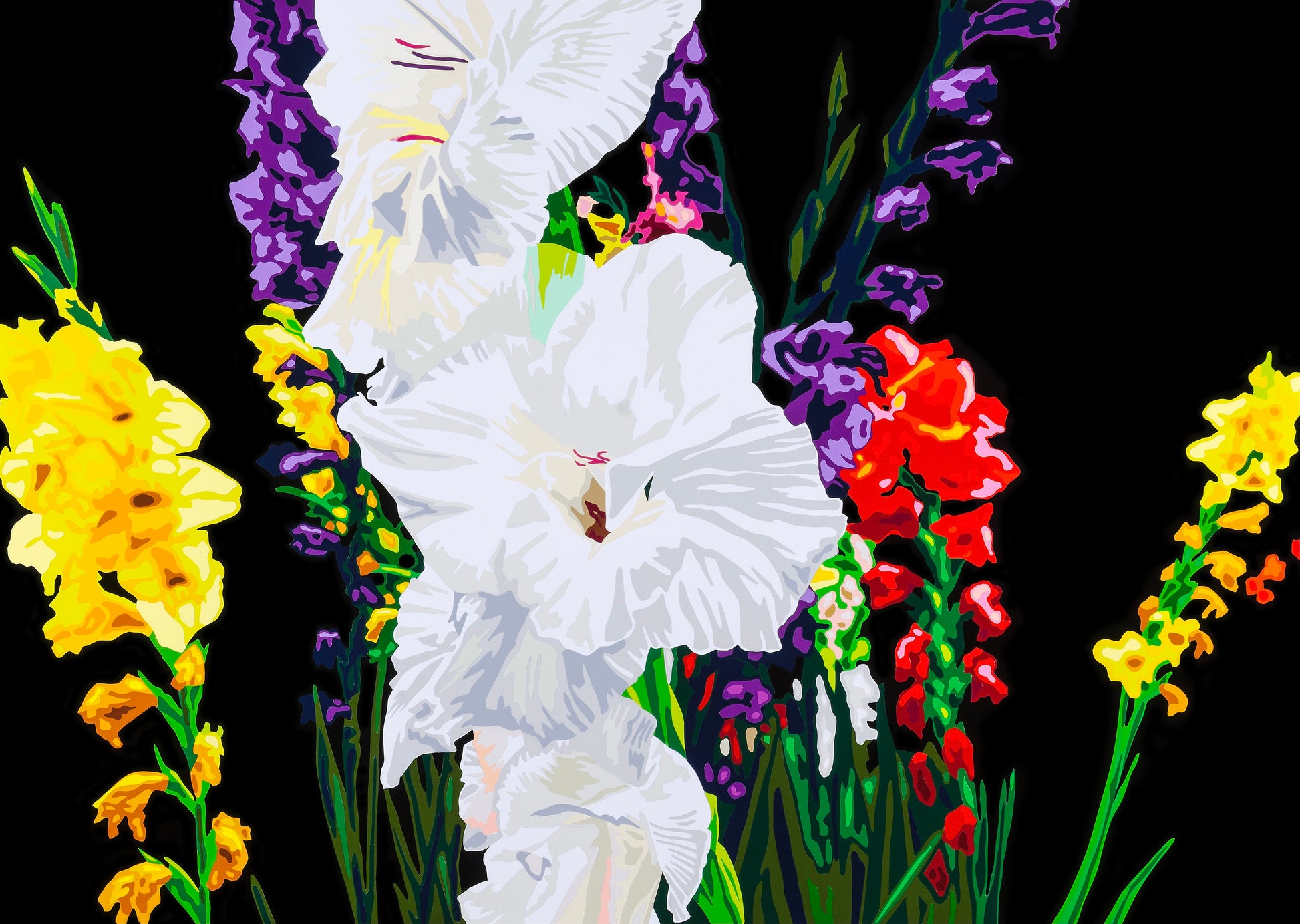 No.2 in the flowers looking wild series. Hand-cut vinyl applied to black perspex panel. This series is a study in to the stunning colours that nature creates, of which a man-made product can surprisingly replicate. The vibrancy of those colours that sunlight illuminates gives them an almost unnatural look... one of almost plastic.