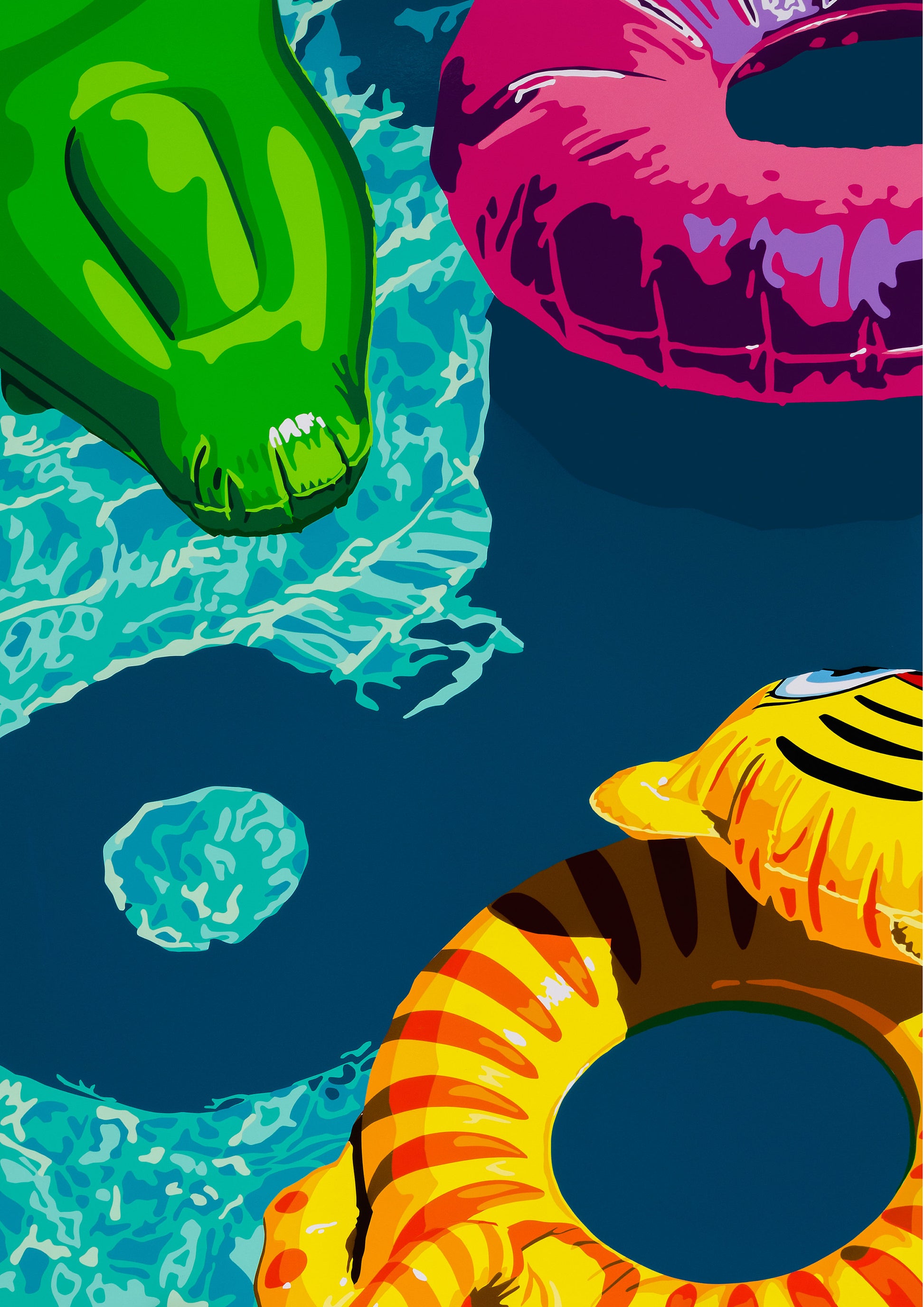 Lilo's on Pool 1. Fine art Giclée Ltd Ed print. Pop Art Swimming Pool