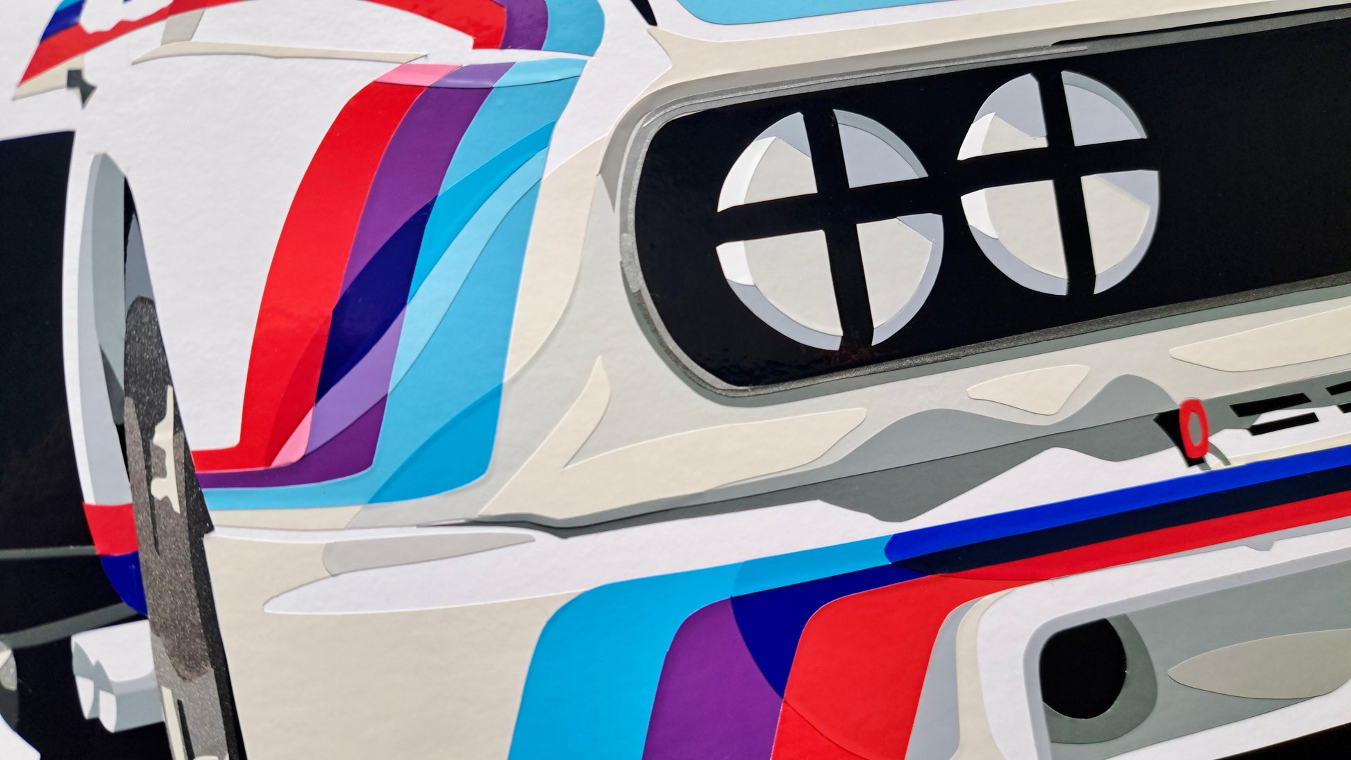 The series is a study on iconic racing liveries that were based on white cars. This edition features some of the most iconic ‘go faster stripes’ ever designed: the BMW M Sport from the mid 70’s. Not only does piece look back at my first hand-cut vinyl artworks, it also pays homage to some of my very early artworks when first establishing myself in the art world.