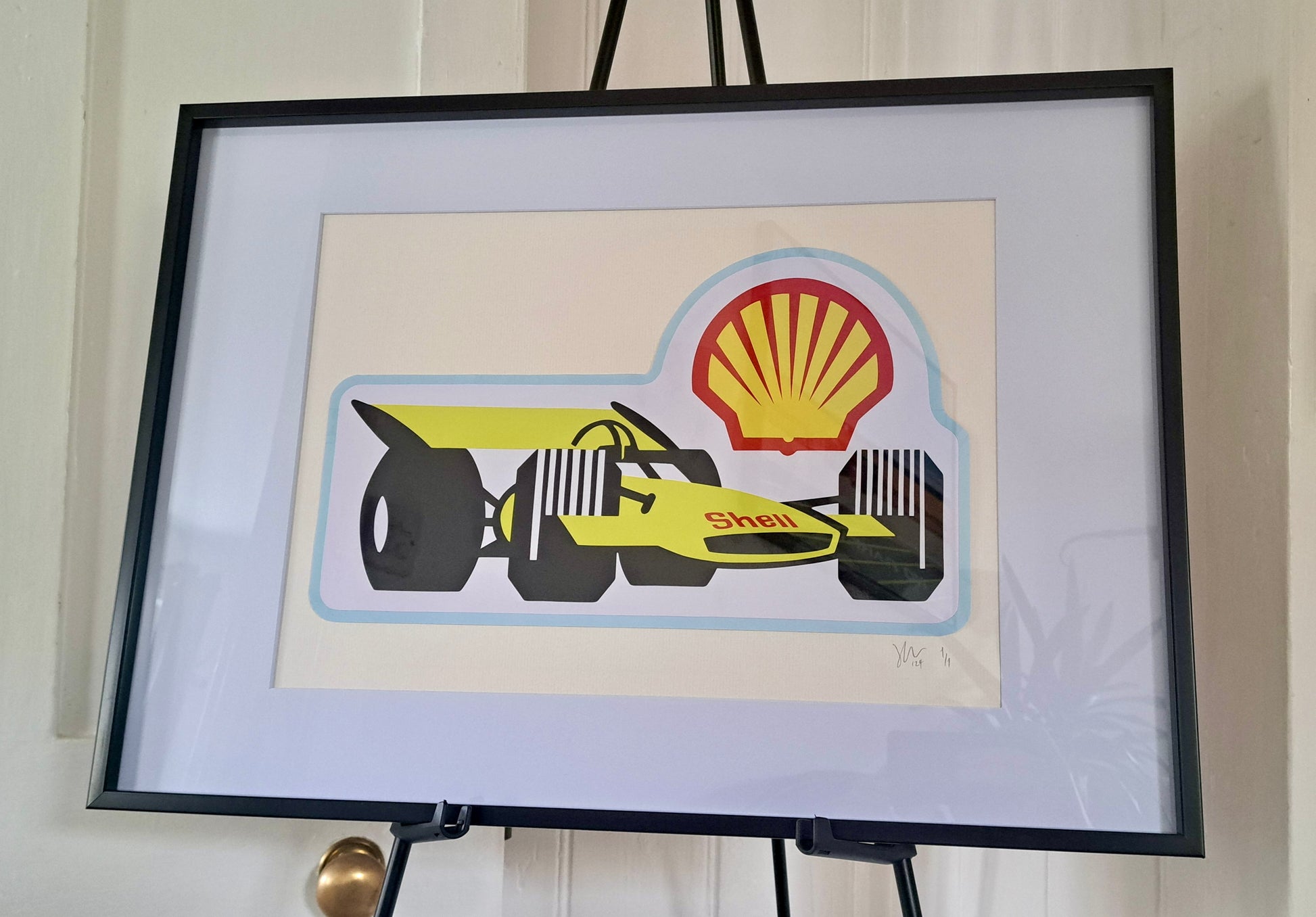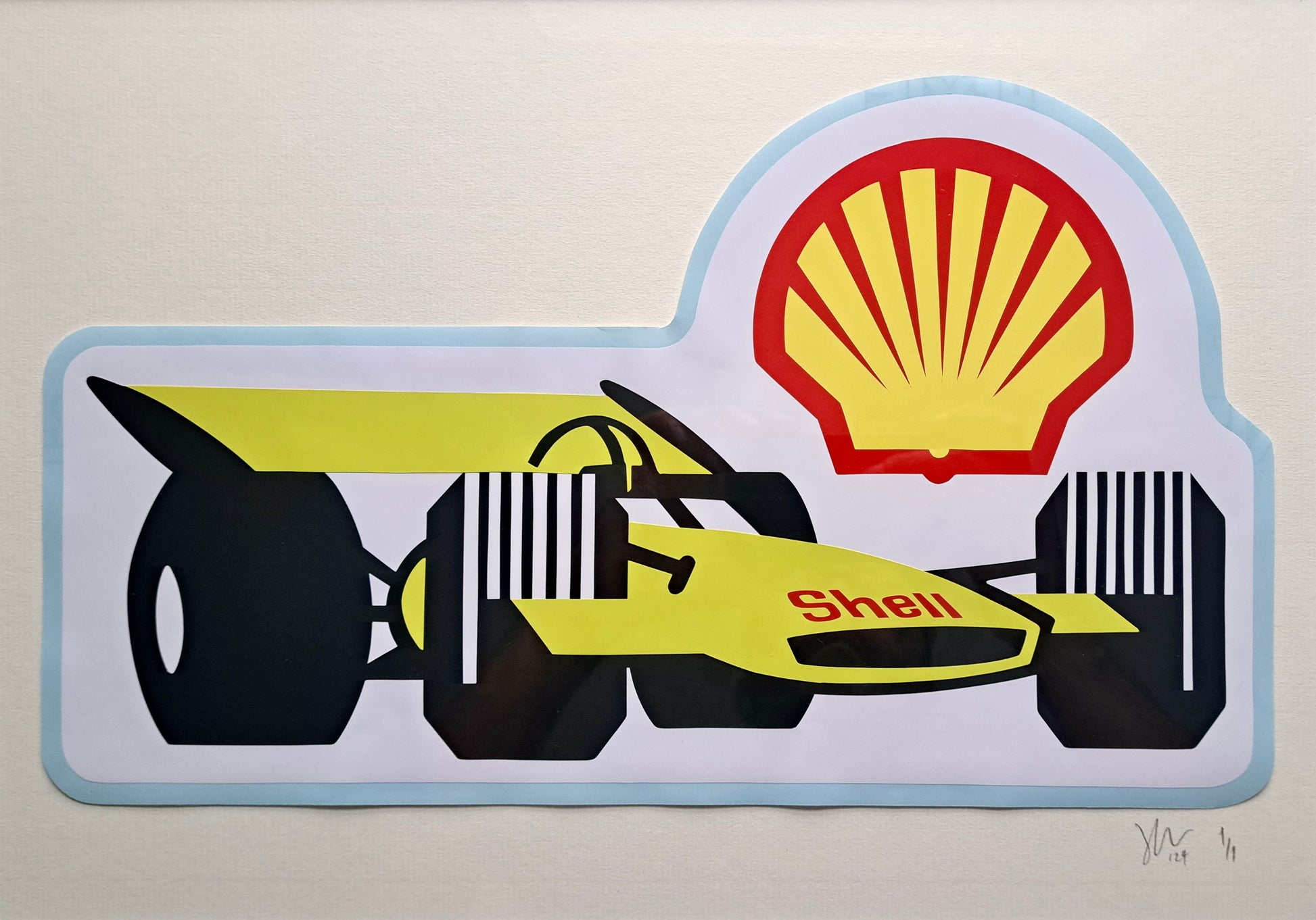 This rendition of the 1970’s Shell sticker is made from individually hand-cut coloured vinyl shapes - without even using a ruler - to make a fine art version of this classic retro sticker from Shell.